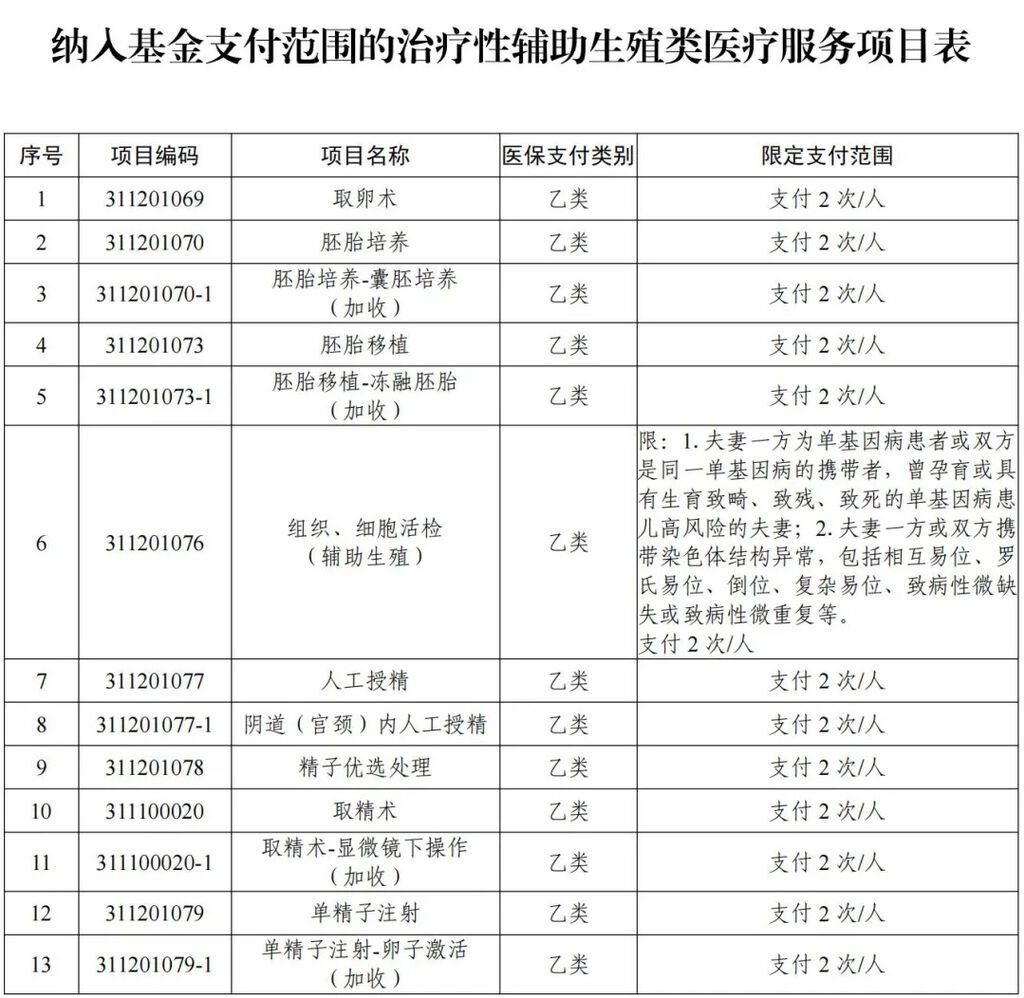 四川医保微信公众号消息,为积极响应国家优化生育政策,促进人口长期均衡发展的战略部署,四川省于近日正式宣布,将“取卵术”在内的13项辅助生殖医疗服务项目纳入基本医疗保险支付范围,不设起付线和乙类先行自付比例,直接按规定比例进行报销,标志着我省在积极支持生育、有效缓解不孕不育患者辅助生殖医疗经济压力方面取得了突破性进展。