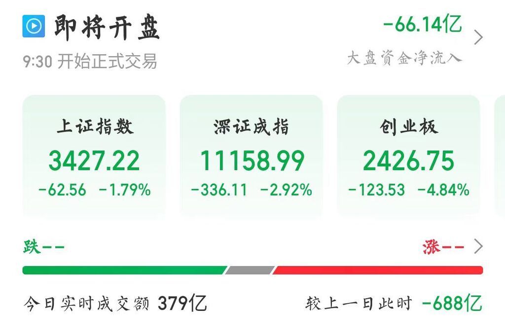 10月9日,三大股指低开,沪指跌1.79%,深成指跌2.92%,创业板跌4.84%,沪深京三市个股近5000只下跌。