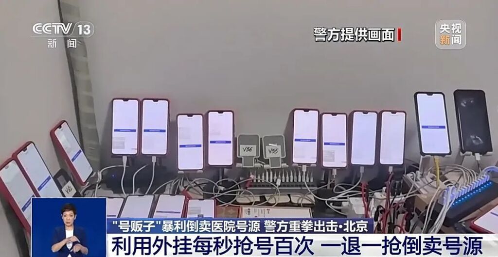 民警告诉记者,当时现场的两百部手机屏幕不停闪烁,刷新着各大知名医院挂号页面,靠着外挂软件一秒点击近百次,抢号成功率远高于患者正常挂号概率。
