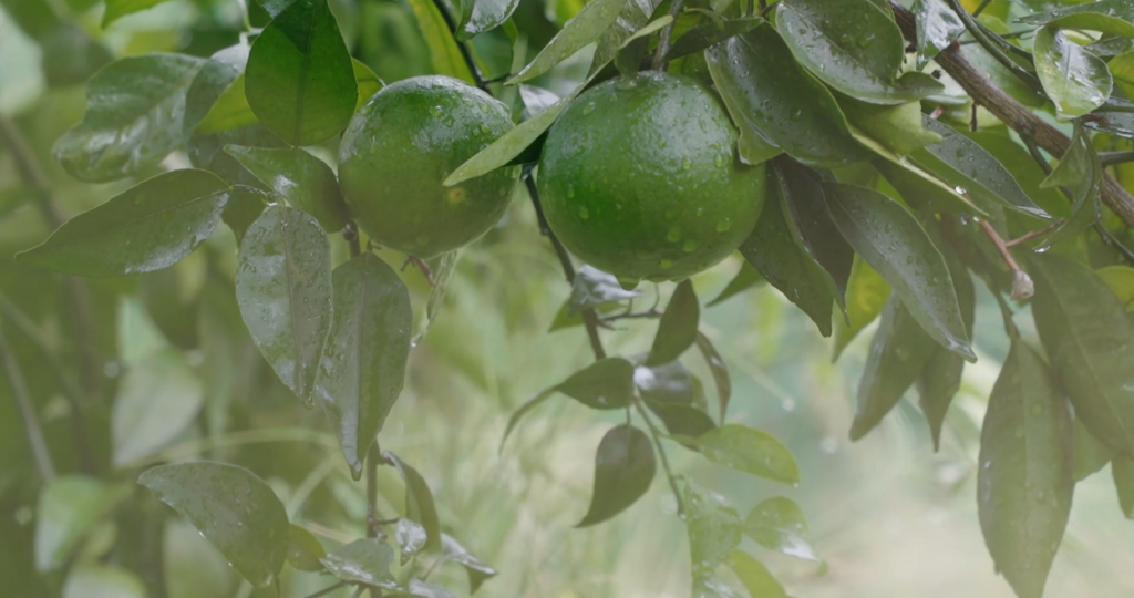 走进中和镇明月村,漫山遍野的柑橘长势良好,喷淋系统散布其间,枝头上鸡蛋大小的柑橘正蓬勃生长着。
