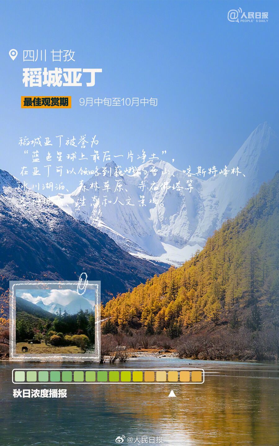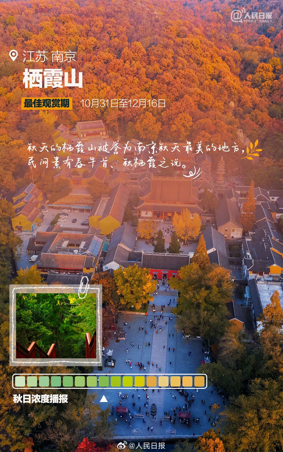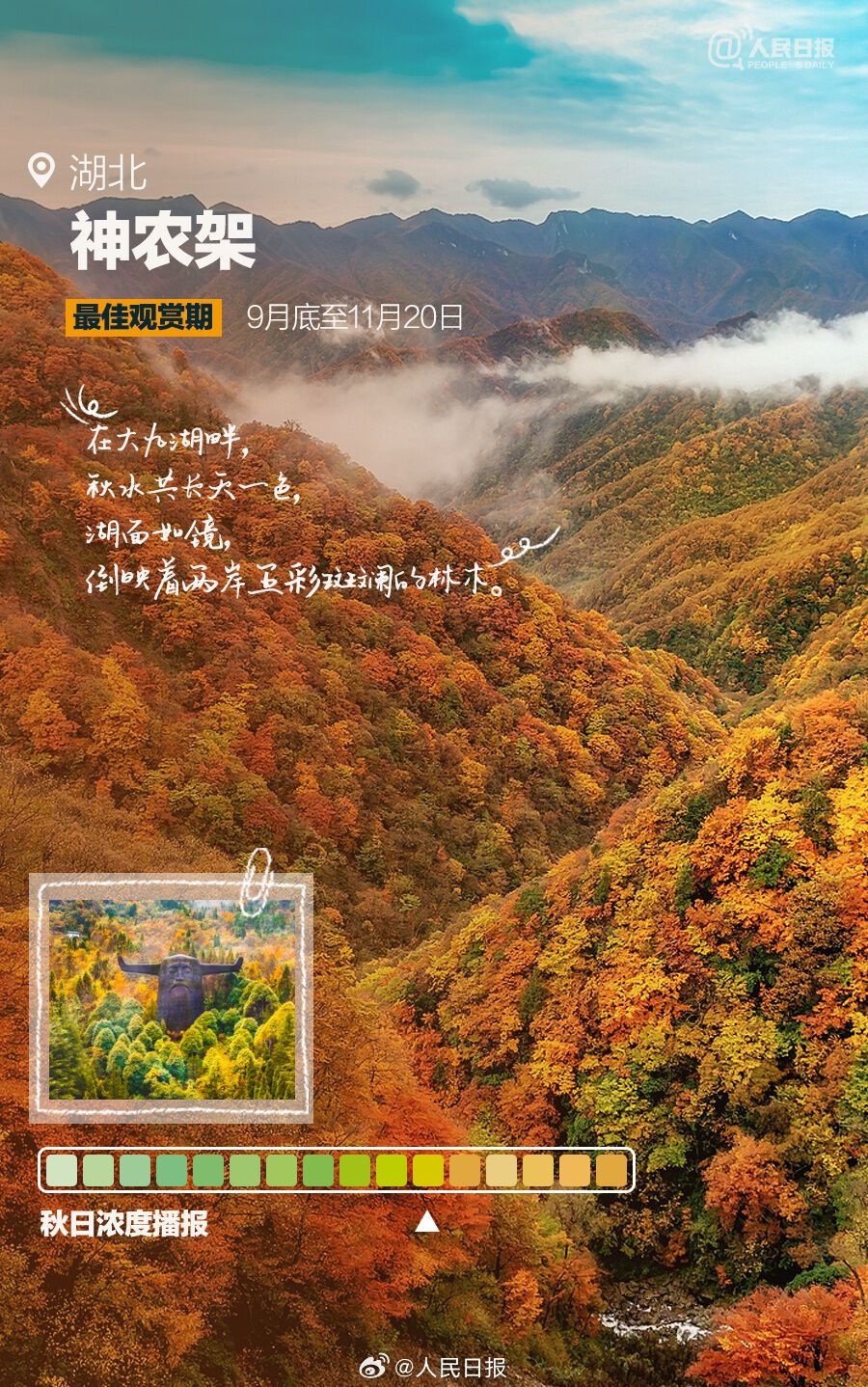 一卷秋风,一夜新凉,又到一年绝美赏秋时。阿勒泰喀纳斯风景区、阿拉善盟额济纳胡杨林、甘孜稻城亚丁等地,已进入最佳观赏期;南京栖霞山、北京故宫、腾冲银杏村等地,迷人的金色世界正在酝酿。最新赏秋地秋日浓度播报来了↓↓做个秋色猎人,一起解锁绝美秋天!