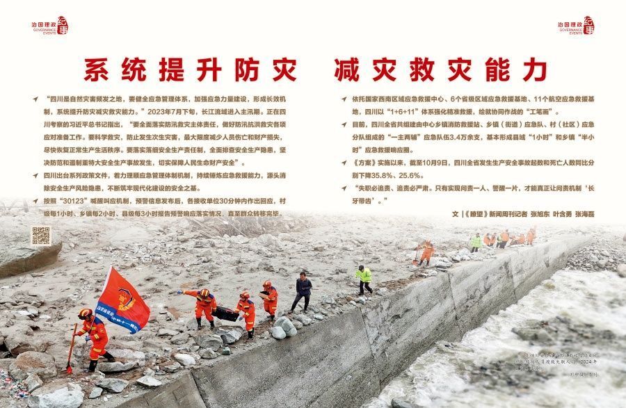 ◇四川出台系列政策文件,着力理顺应急管理体制机制,持续锤炼应急救援能力,源头消除安全生产风险隐患,不断筑牢现代化建设的安全之基。