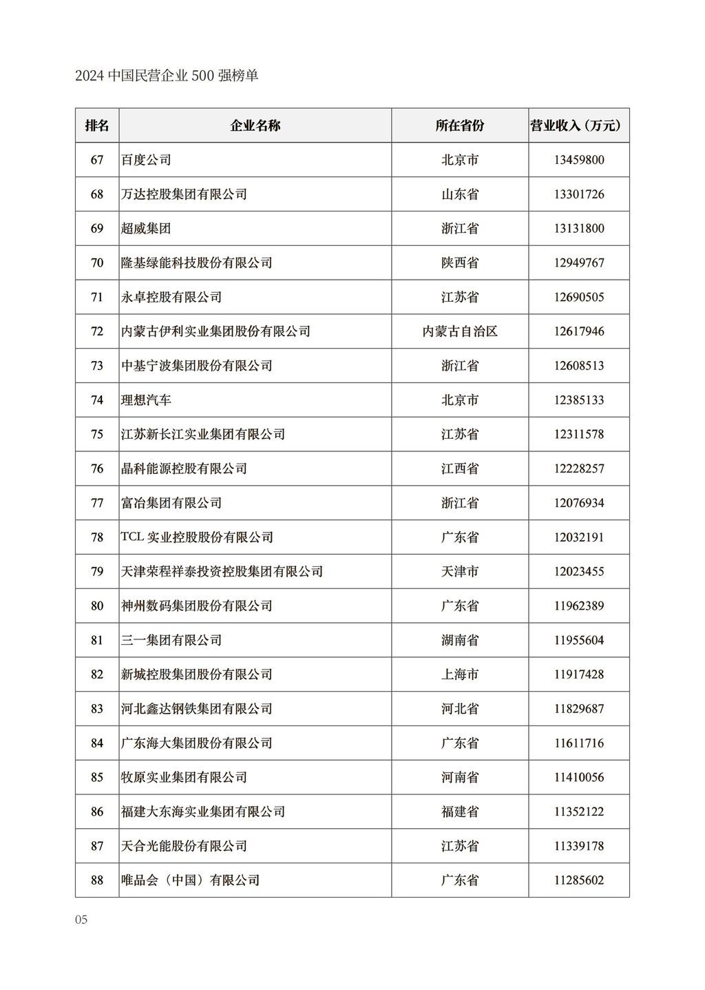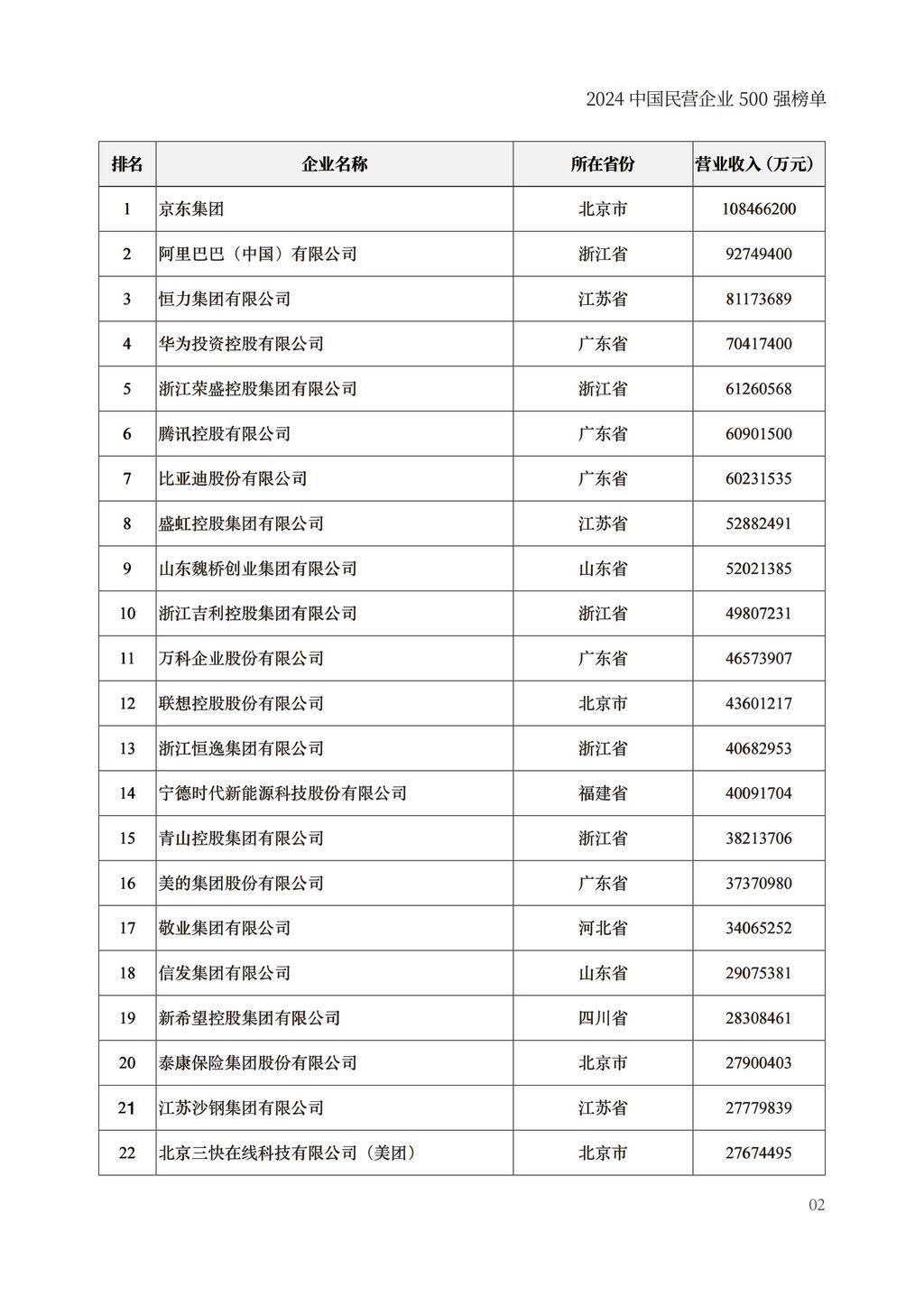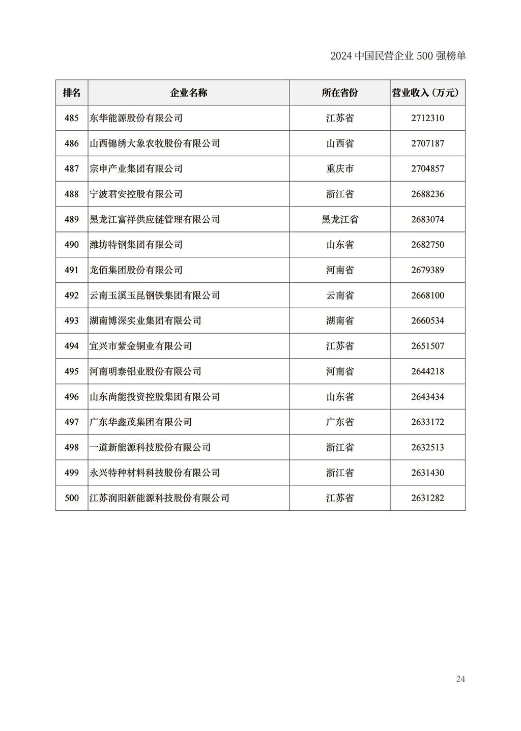 今年是全国工商联组织开展第26次上规模民营企业调研,共有9642家2023年营业收入5亿元以上的企业参加,其中营业收入前500位的企业为“2024中国民营企业500强”。