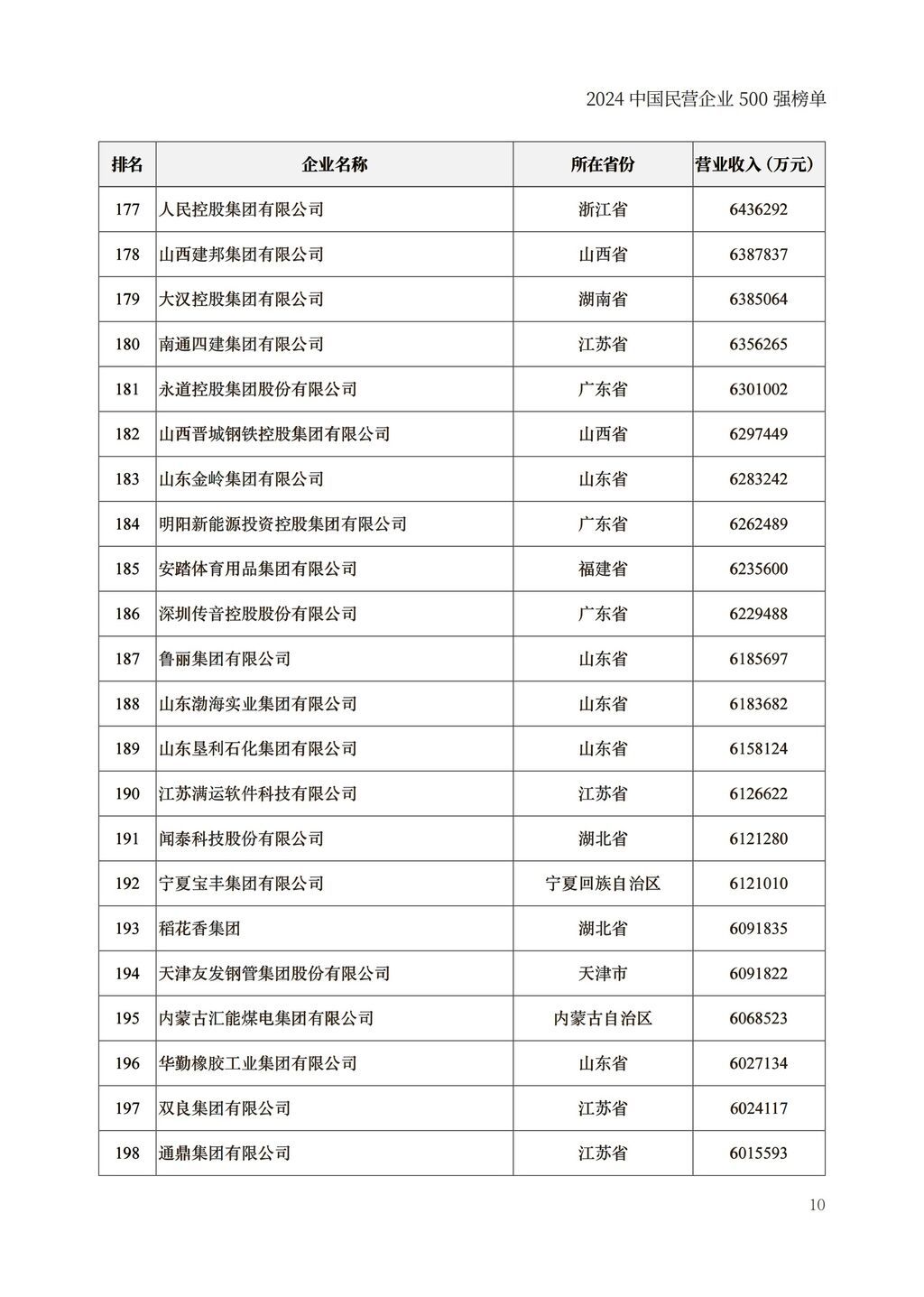 其中,四川10家企业上榜“2024中国民营企业500强”。