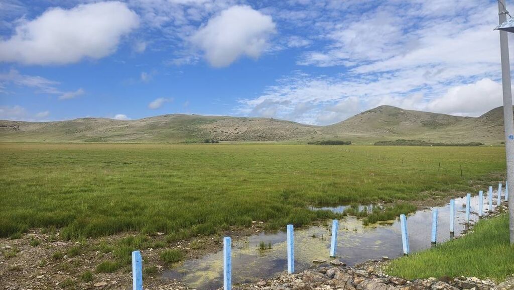 据若尔盖县林草局副局长付志勇介绍,在修建眼前的生态拦水坝之前,这里曾经是一片已经无法蓄水的湿地,且出现沙化趋势。
