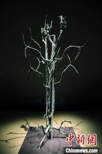 这棵神树静静矗立在展厅一隅,众多观众围绕四周,抬头仰望其伟岸身姿。远远望去,仿佛4000多年前古蜀先民围绕神树祭祀祈福,渴望沟通天地人神的场景再现。