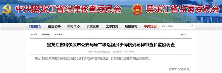 此前,根据鸡西市纪委监委消息,于涛已于7月份接受纪律审查和监察调查,被查时其身份为哈尔滨市公安局原二级巡视员。