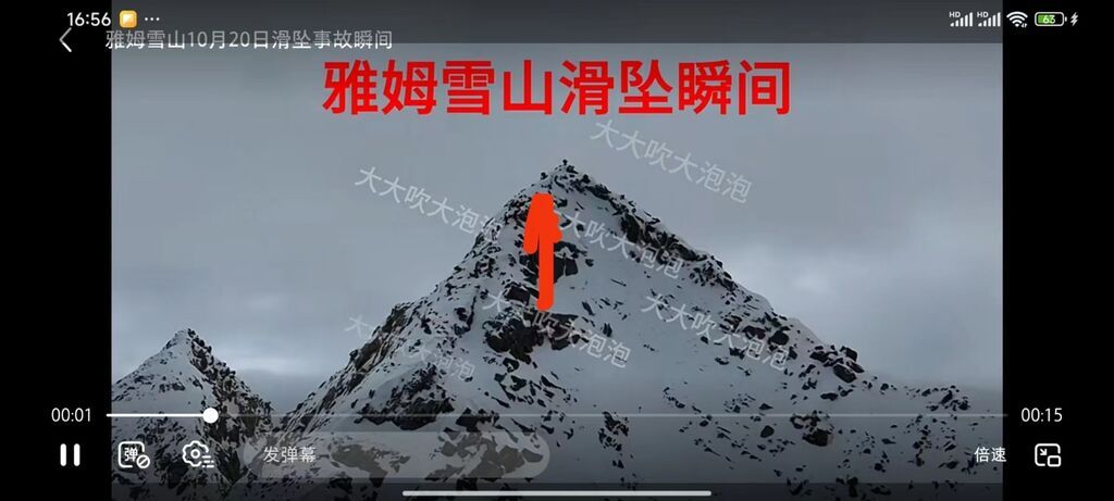 张先生在某社交平台发帖表示:“雅姆雪山10月20日滑坠事故瞬间,回看视频才发现拍到了滑坠瞬间。户外有风险,量力而行,敬畏自然!”视频显示,张先生正在操作无人机围绕雅姆雪山山顶盘旋拍摄,山顶处一开始有两个登山者,结果其中一人突然向着山谷方向坠落,瞬间不见了踪影。张先生告诉记者,当天自己和朋友约好一起登山,但爬到海拔5168米的高度就放弃了,“不敢上了。”不过在用无人机拍摄时,他意外拍到了那名男子坠落的瞬间,“他是登顶后往下走的时候出的事,人已经不在了。”至于死因是身体摔伤还是等待救援时失温,张先生表示不太清楚。
