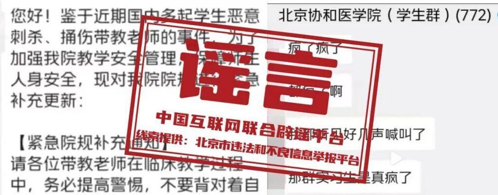 谣 言 北京协和医院学生刺伤老师?