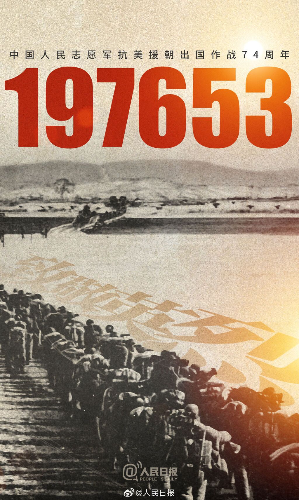 74年前,中国人民志愿军抗美援朝出国作战。这一战,拼来了山河无恙、家国安宁。74年了,我们从没忘记,那些最可爱的人。今天,铭记伟大胜利,致敬英雄儿女!