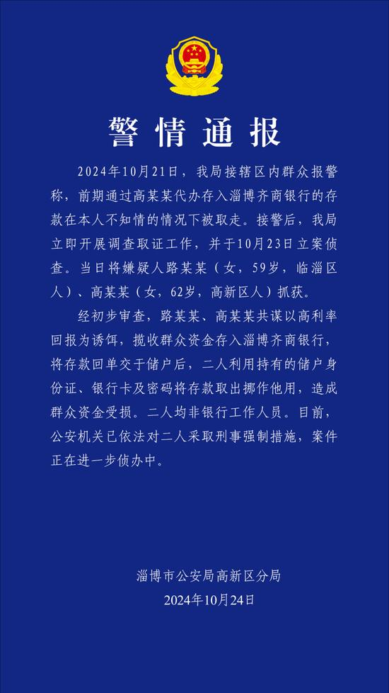 ·警方通报“女子存银行40多万元取款时余额为零”,2人被采取刑事强制措施。