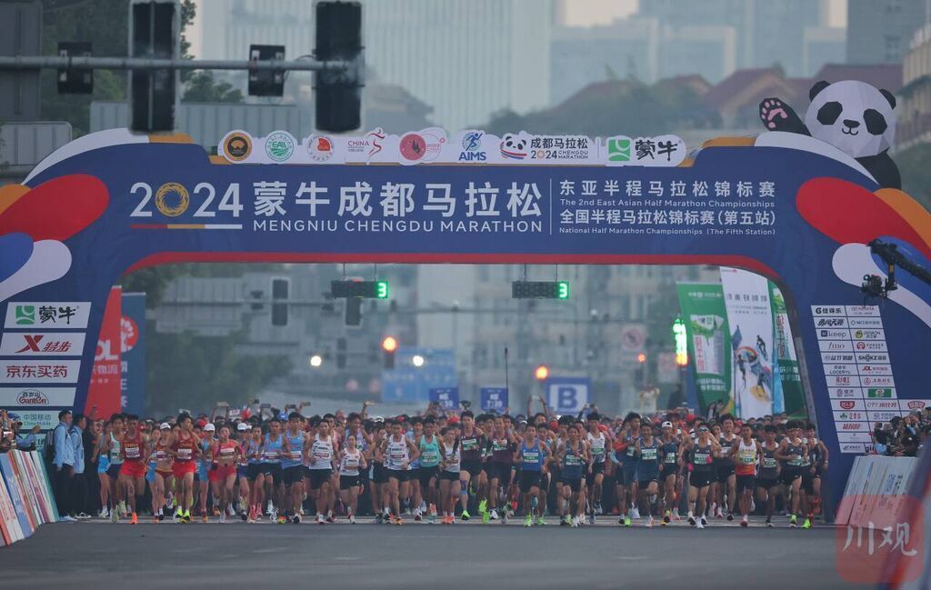 2024成都马拉松升级成为世界田联金标赛事,同时还获得了东亚半程马拉松锦标赛及全国半程马拉松锦标赛(第五站)的承办权,实现“三赛合一”,竞技水准进一步提高,共吸引了来自55个国家及地区的外籍选手参赛。