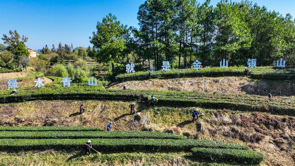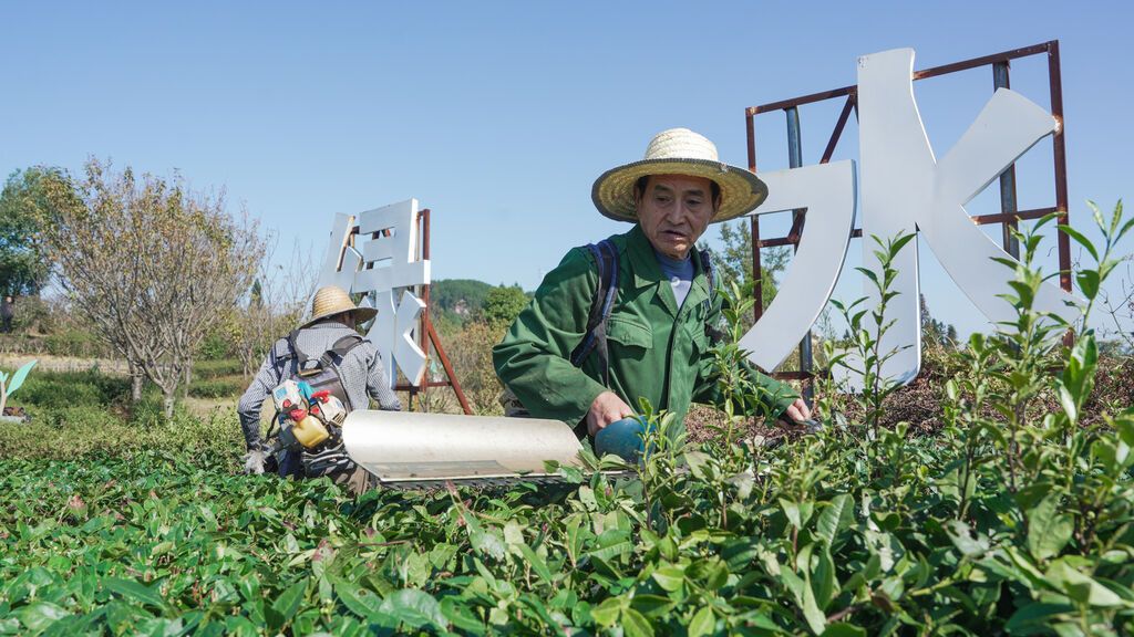 10月23日,在四川省平昌县三十二梁镇龙尾社区翠绿茂盛的茶园里,随处可见茶农忙碌的身影,他们手持机械、锄头等,忙着给茶树修枝、整形、除草……为来年茶叶增产增收打下坚实基础。