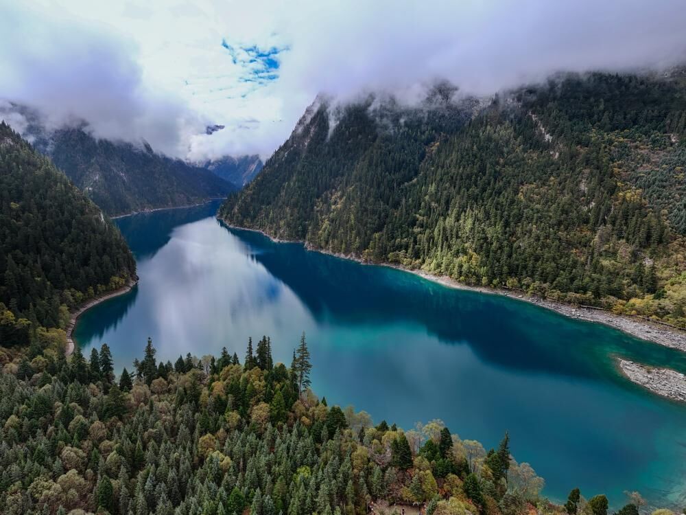 “羊峒番内,海狭长数里,水光浮翠,倒映林岚。”在当地县志记录中,九寨沟有数十里之长的高原湖泊风光。