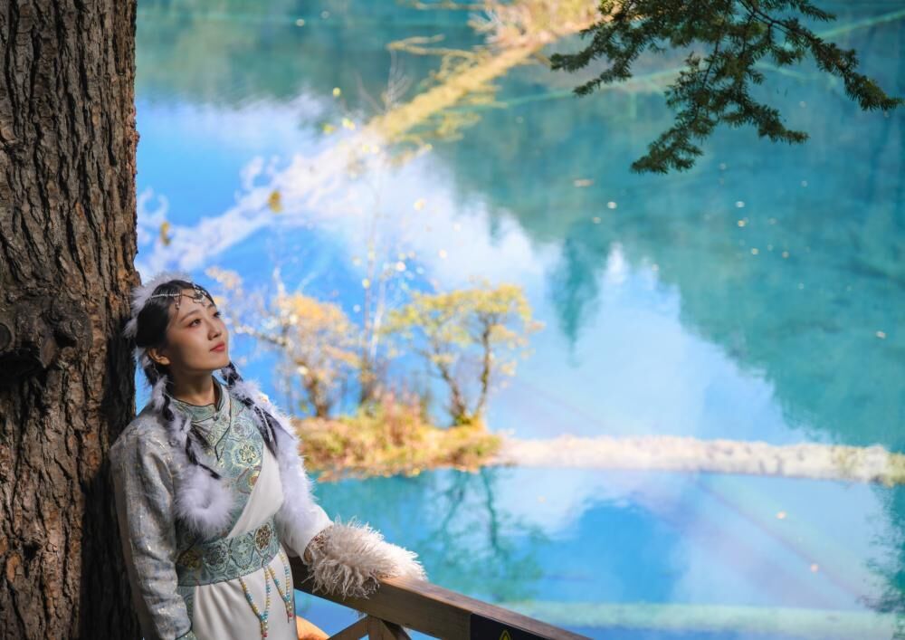 江苏林女士的新婚蜜月之行便是来到九寨沟,她特意租了传统藏族服饰、化上了特色妆容,站在五花海的栈道上,身后是碧蓝湖水,身侧是林影婆娑。“在这么美的景色之下穿上民族服装,我想拍出来的照片一定很美!”