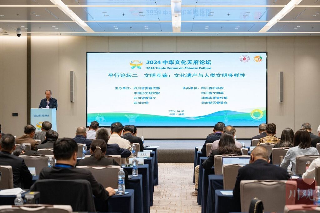 10月30日,2024中华文化天府论坛在成都天府国际会议中心举办。活动期间,以“文明互鉴:文化遗产与人类文明多样性”为主题的平行论坛举行,来自多个国家的知名专家学者,围绕文化遗产与世界文明史、文化遗产与文化交流、古蜀文明与世界青铜文明、文化遗产与人类文明多元发展等方向展开讨论,推动践行全球文明倡议,促进世界文明交流互鉴。