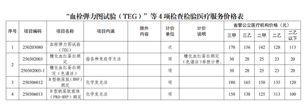 10月31日,川观新闻记者从四川省医保局了解到,为进一步规范医疗服务价格管理,结合四川实际,该局决定从当天起下调“血栓弹力图试验(TEG)”等4项检查检验医疗服务的省管公立医疗机构价格。
