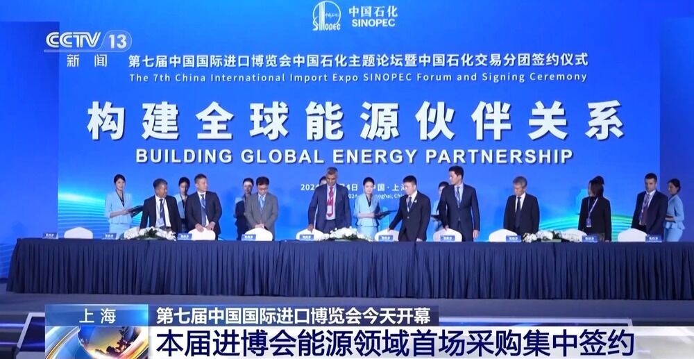 昨天(4日)下午,第七届中国国际进口博览会迎来能源领域首场采购集中签约,当天中国石化与来自18个国家和地区的38家合作伙伴采购签约,涉及原油、化工品、设备、材料、消费品等10大类、27种产品,采购签约金额达409亿美元。我国能源领域坚持开放合作、互利共赢,有力促进了世界各方共同发展。
