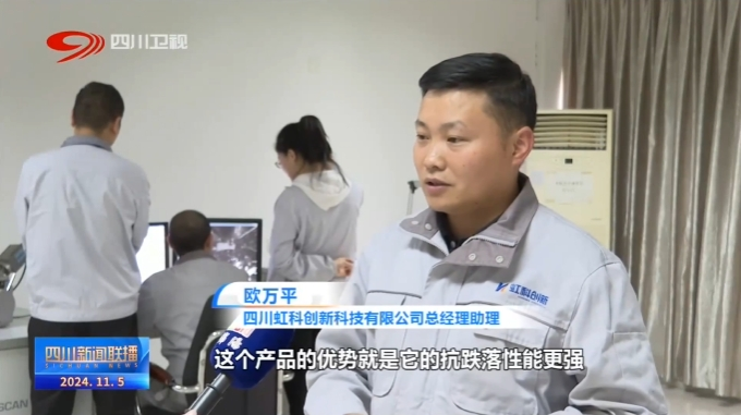四川虹科创新科技有限公司总经理助理 欧万平:目前我们“王者熊猫”第三代(的升级)产品已经研发成功,产品的优势就是它的抗跌落性能更强。