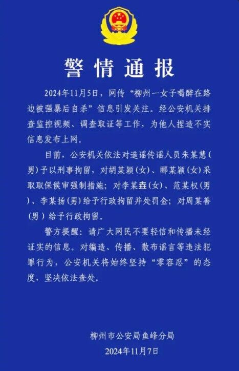 ·网传“柳州一女子喝醉在路边被强暴后自杀”不实!警方再通报。