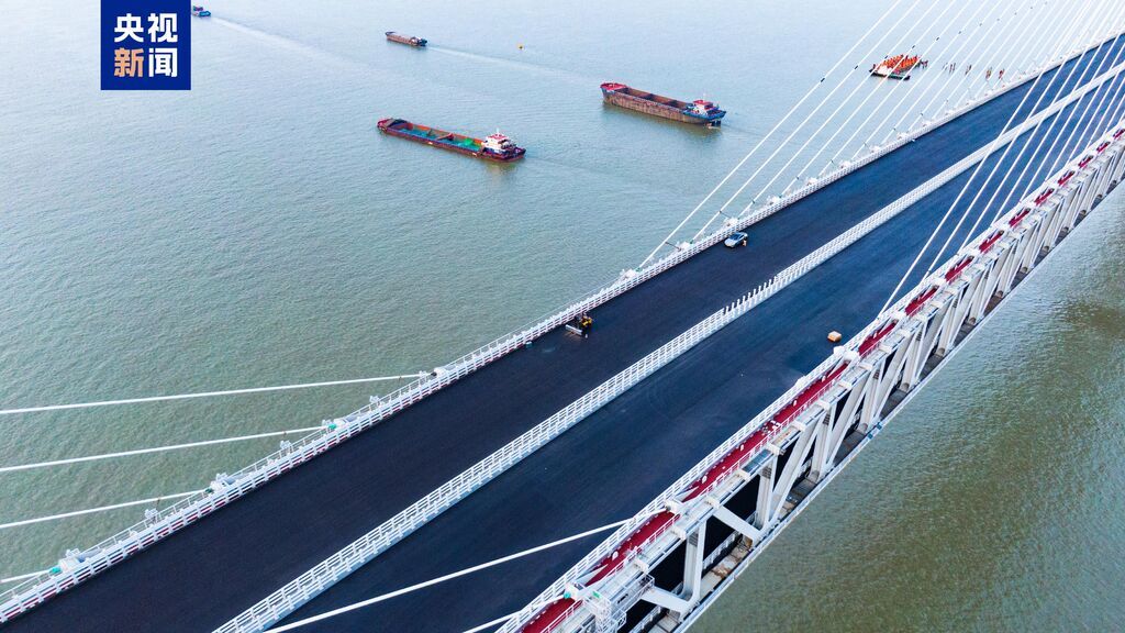 常泰长江大桥是长江上首座集高速公路、城际铁路、普通公路三种方式于一体的过江通道,全长10.03公里,其中双层连续钢桁梁长度达到4266米。上下层钢桥面铺装总面积超25万平方米,相当于33个标准足球场,平均铺装厚度在6-6.8厘米间。