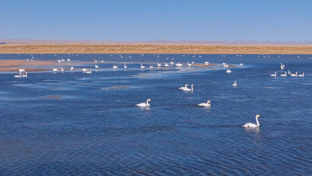 近日,近八百只大天鹅陆续飞抵青海湖畔,一眼望去,十分壮观。