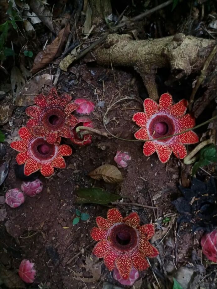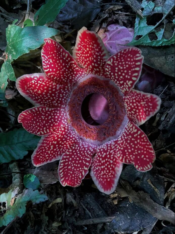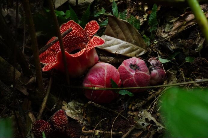 据了解,寄生花是一种特殊类型的寄生植物,主要寄生于葡萄科崖爬藤属植物的根或茎内部。不同于其他植物,寄生花只在生殖期才会展现出地面上的部分,即其美丽的花朵。每年初冬时节,这些花朵竞相绽放,展现出荷花般大小、血红色的花瓣。尤其值得注意的是,到了傍晚,寄生花还会散发出强烈的腐臭味,这种气味能够吸引苍蝇等昆虫前来帮助传粉,形成了一种独特而高效的繁殖机制。