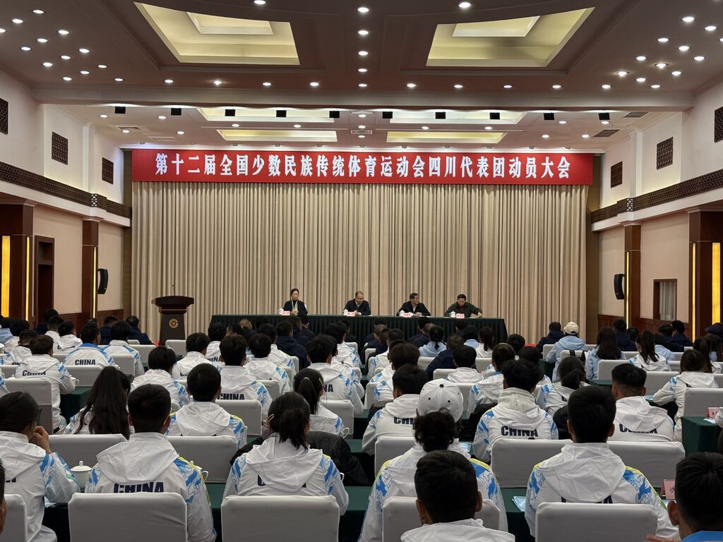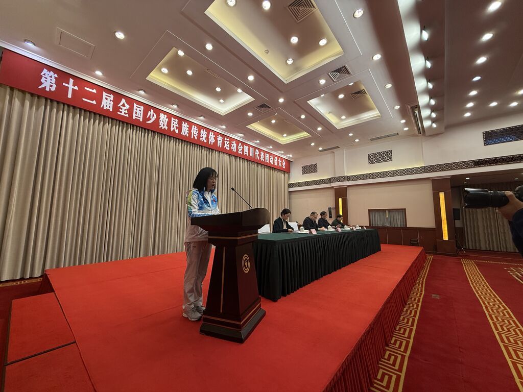 大会上,四川代表团进行了出征动员和授旗仪式。代表团全体成员表示,要深刻认识组团参赛的重大意义,进一步增强做好组团参赛工作的责任感、紧迫感、使命感,保持饱满的激情、坚持昂扬的斗志、营造浓厚的氛围、坚守过硬的作风,认真践行和弘扬中华体育精神、民族团结精神,争创佳绩、以赛传情、交流互鉴,展示四川民族团结进步事业发展的新成果,展现各民族昂扬向上的精神风貌和团结奋进的时代风采。