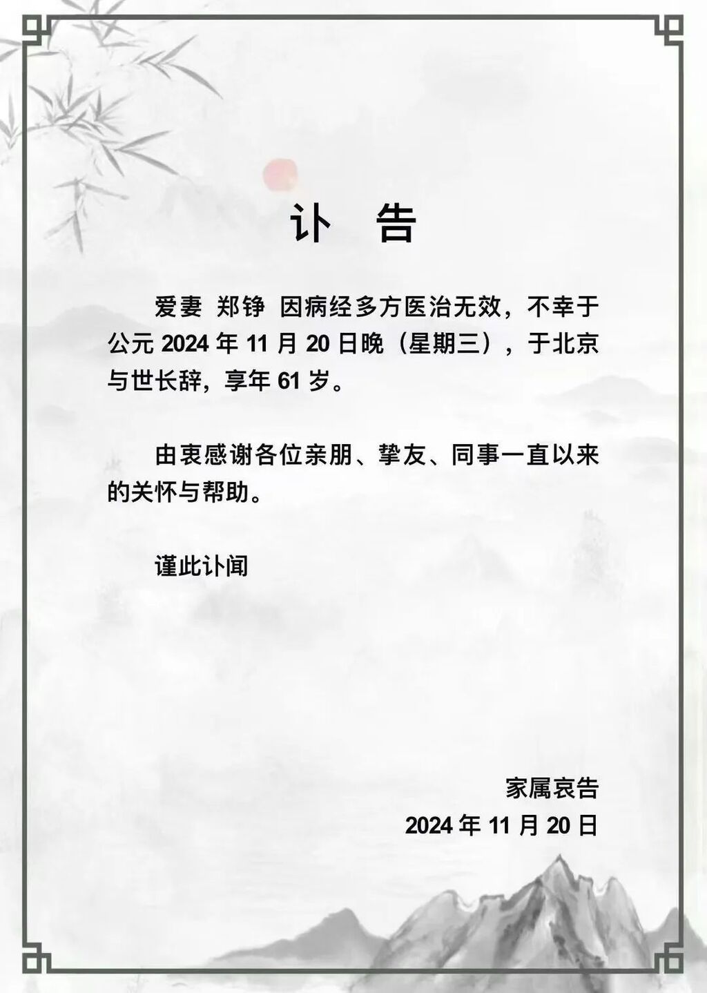 21日,记者从知情人处获悉,郑铮因病与世长辞。