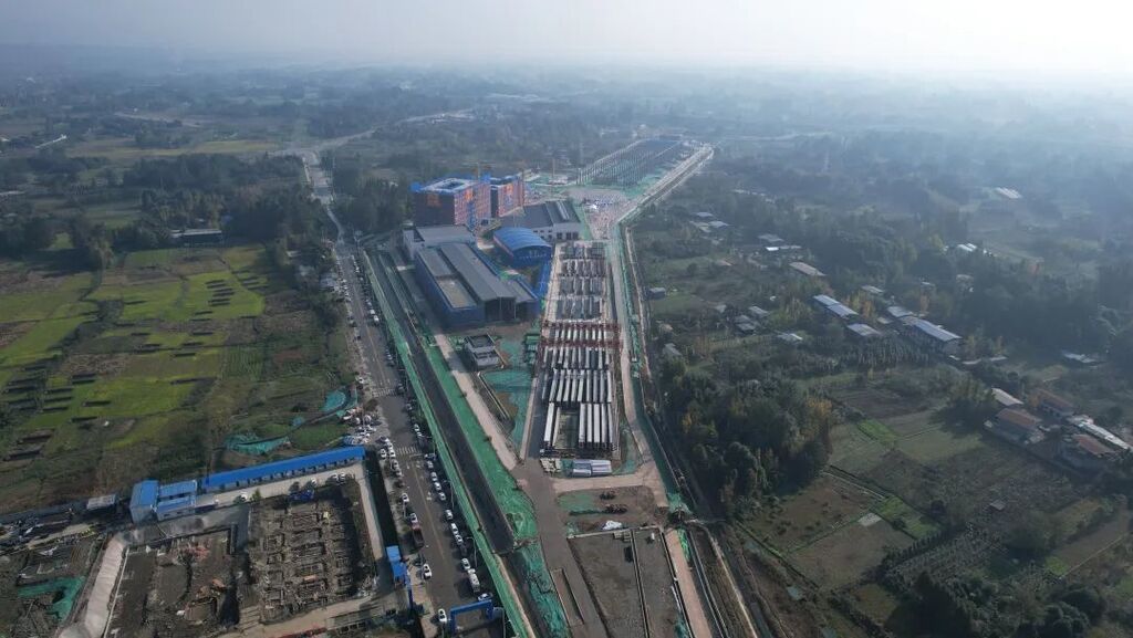 “项目自2022年10月开工建设以来,已完成约60%的施工内容。作为保证都四项目安全运行的总后勤部,车辆基地建成后将具备车辆停放及日常保养、车辆检修、列车救援、设备维修、材料供应、技术培训、办公等功能,为项目安全平稳运营保驾护航。”
