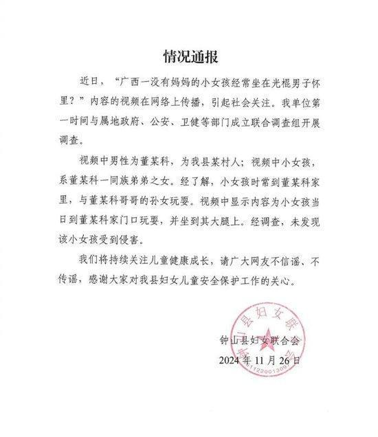 ·广西一没有妈妈的小女孩经常坐在光棍男子怀里?钟山县妇联通报。