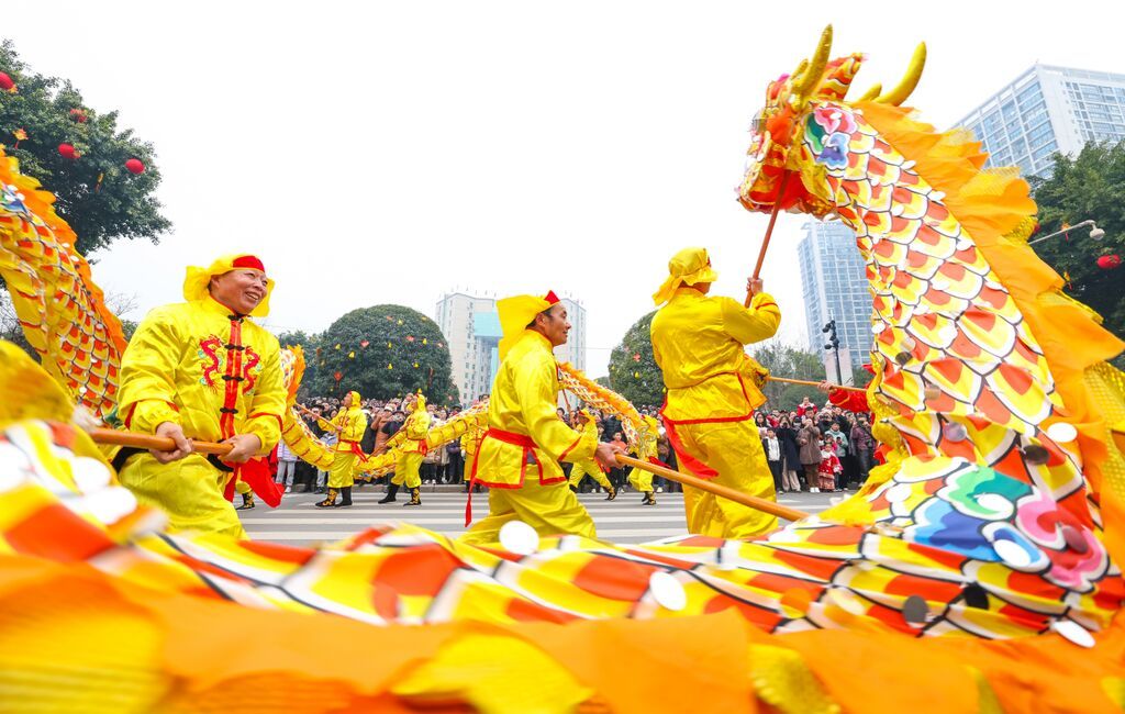 广安主城区千龙千狮非遗展演,吸引了10.7万余人次现场观众、68.1万余人次网络观众;邻水县6支龙狮队伍、4台花车、8个展演方阵走上街头;前锋区游街表演宕渠双竹连响、桂兴唢呐、代市舞龙、花轿迎亲以及采莲船等民俗项目;华蓥市组建19支队伍进行滑竿抬幺妹、婚嫁歌、车车灯等非遗展示……