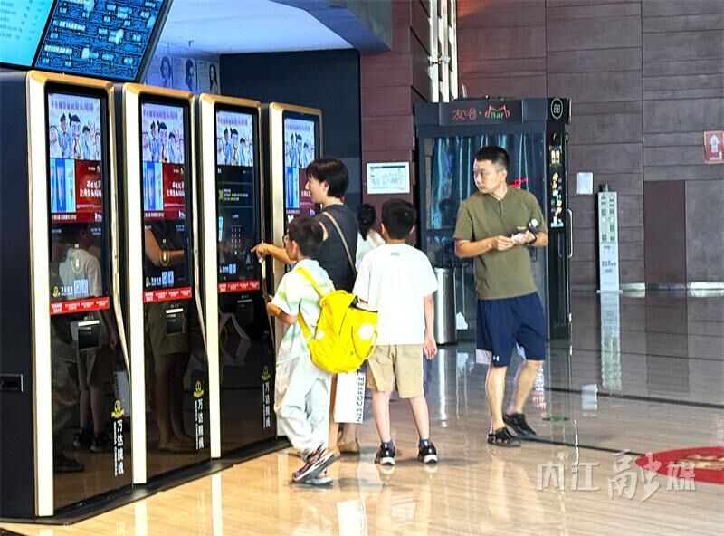 7月20日,记者来到位于内江市东兴区汉安大道的一家影城。有的观众在自助取票机前麻利地操作;有的在小吃区挑选爆米花、可乐;有的和家人朋友举着手机,对着影院里琳琅满目的电影海报、人形立牌拍照“打卡”。