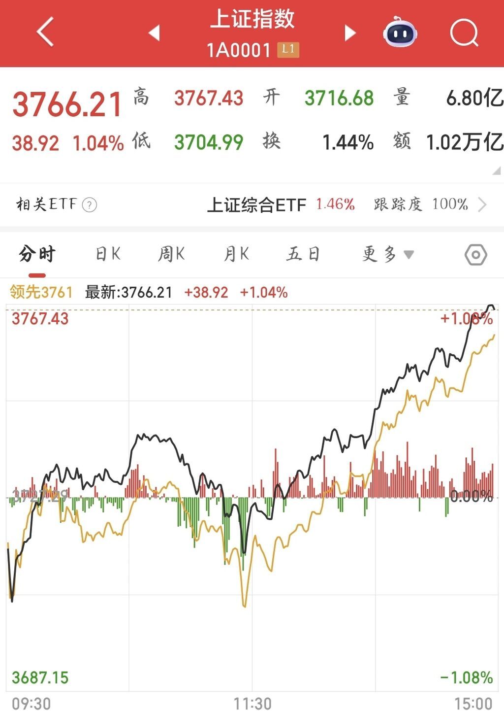 8月20日,A股早盘冲高回落后,午后探底回升,在19日短暂休整后,沪指再创年内新高。截至收盘,沪指涨1.04%报3766.21点,深成指涨0.89%报11926.74点,全市场超3600只个股上涨。