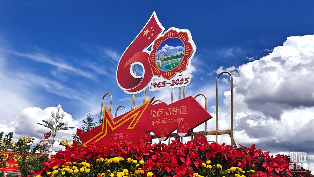 △西藏自治区成立60周年标识。(总台央视记者韩锐拍摄)
