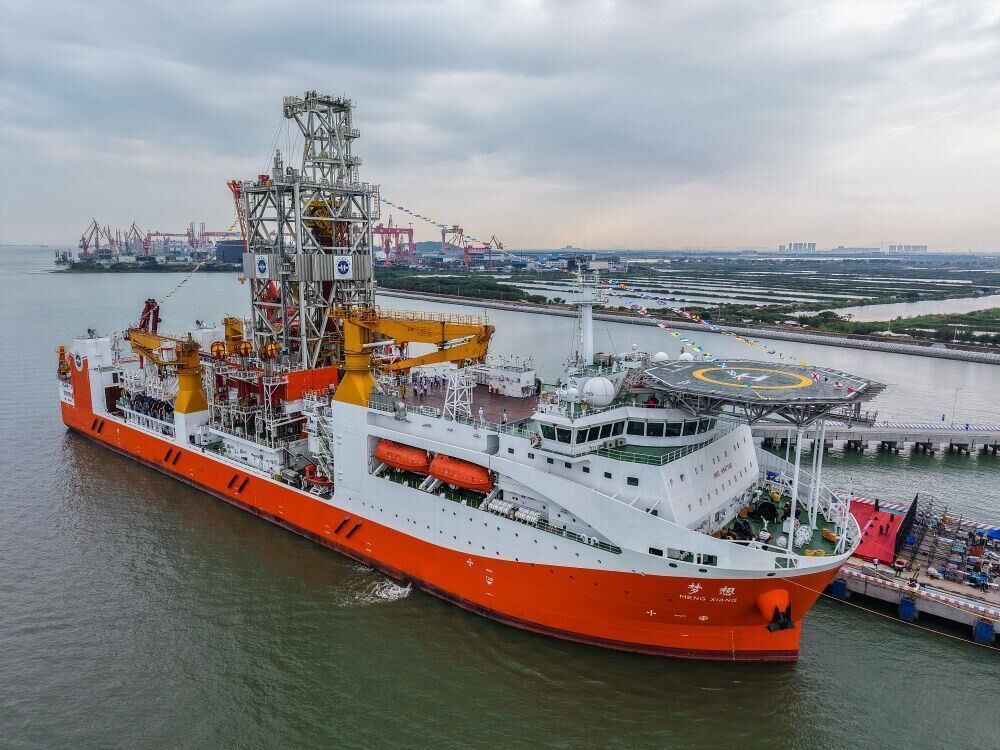 △靠泊在广州海洋地质调查局科考码头的我国自主设计建造的首艘大洋钻探船梦想号。