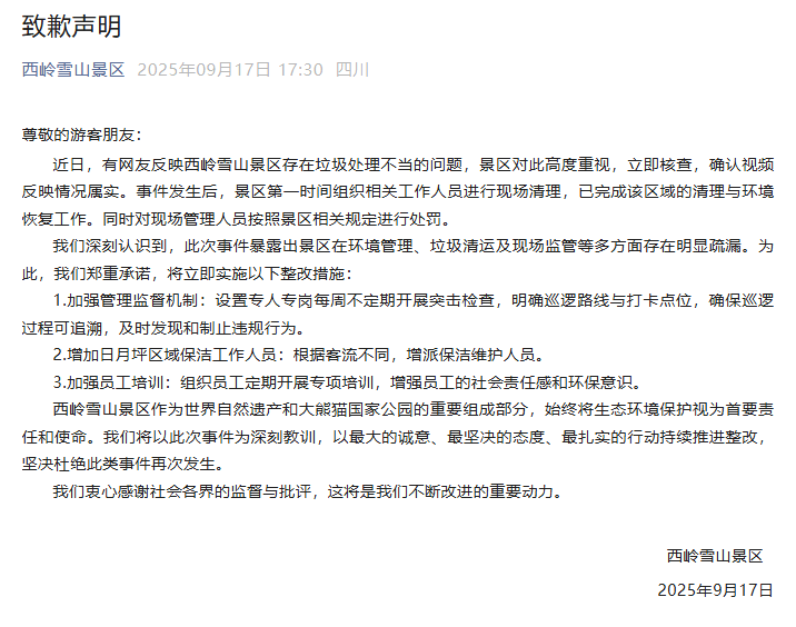 ·保洁人员将山上垃圾丢至原始森林?西岭雪山景区致歉。