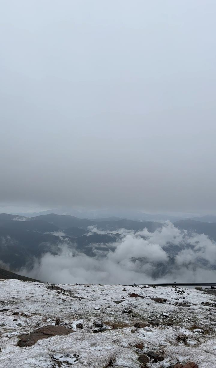 ·山西五台山迎入秋第一场雪,山顶现“云海雪原”,当地领队:降雪持续一个半小时。