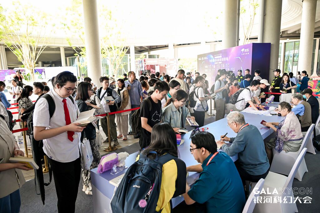 作为2025银河科幻大会特别支持方,京东图书在现场为读者带来丰富的互动玩法,并联合《科幻世界》共同举办中外科幻名家签售活动。不同文化背景的科幻创作者齐聚一堂,展开一场以“拿起书,握住世界”为主题的跨文化对话。