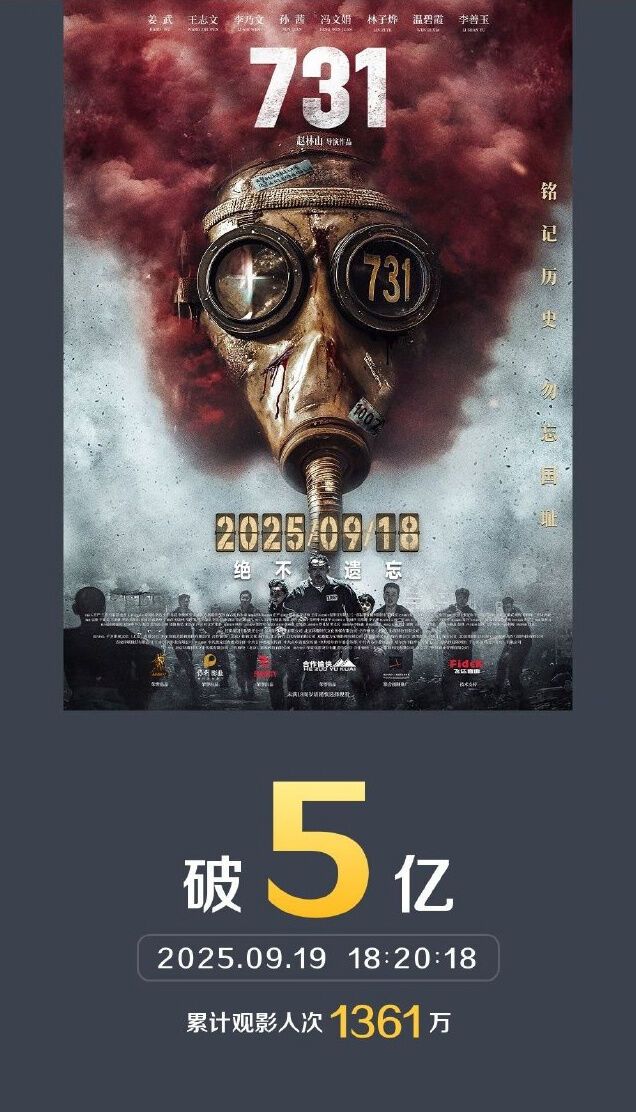 《731》于9月18日在全球多地上映,19日,在美国、加拿大上映。