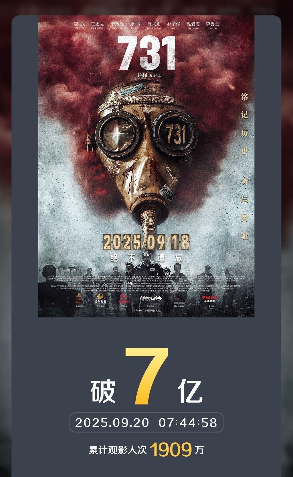 《731》刷新两项中国影史纪录