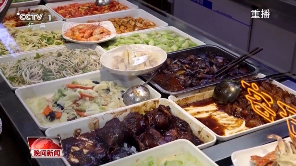 临近中午,科技馆楼下的“一刻钟便民生活圈邻里幸福食堂”已经有不少人开始用餐。18种菜品供居民自助选择,60岁以上老年人就餐不超十元。