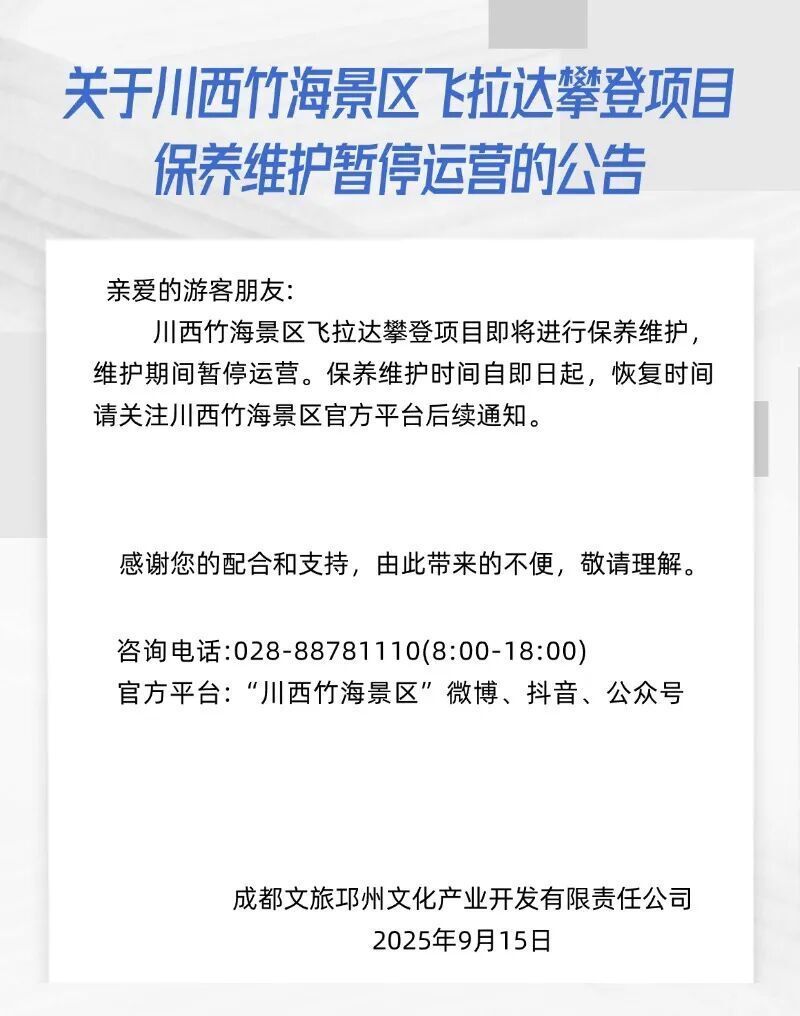 为进一步提升香炉山客运索道的运行安全性与稳定性,香炉山索道将于2025年9月20日至2025年9月25日(共计六天),开展设备检修及保养维护,检修期间客运索道将暂停运营。