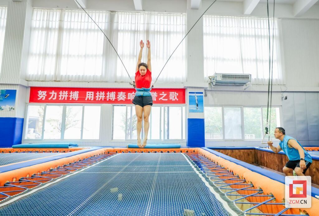 近日,自贡市运动技术学院跳水运动训练中心。回到家乡的陈佳在中国跳水队资深教练赵文进保护下,在弹网上一遍遍起跳、落下、起跳……
