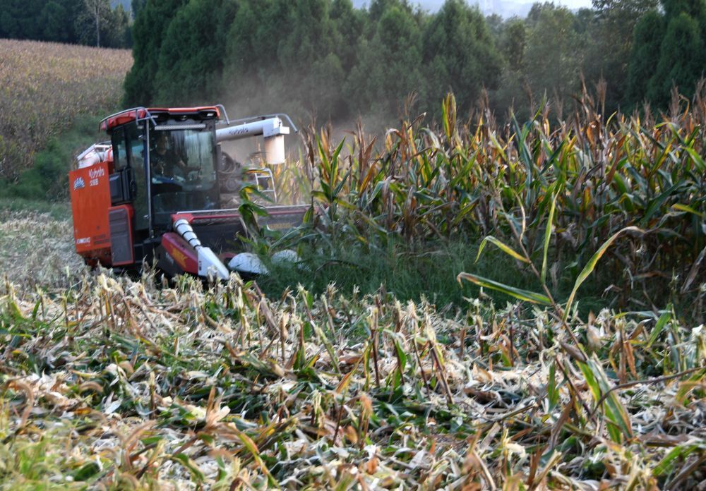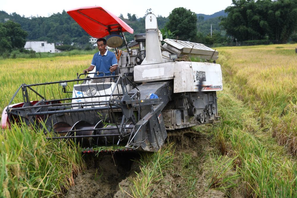 记者见到宜宾市兴文县五星镇金钟村种粮大户何桥时,一台收割机刚刚完成作业,他种植的水稻田几乎已经收割完毕。