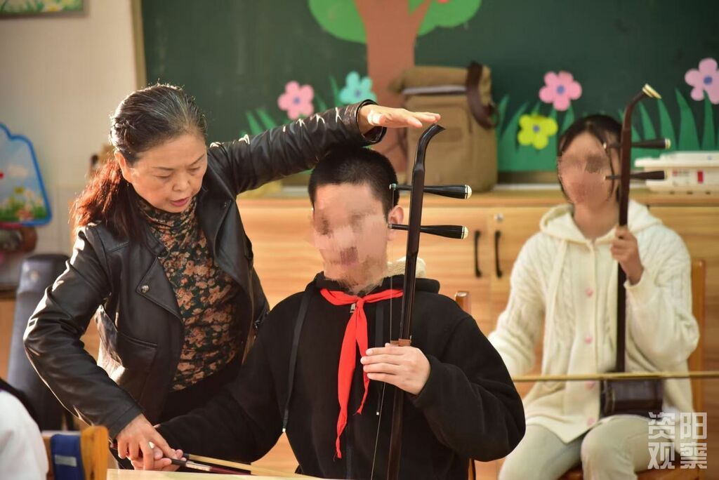 不久前的“德润资阳 弦上微光”二胡音乐鉴赏活动现场,《喜看麦田千层浪》《友谊地久天长》的旋律从雁江区特殊教育中心孩子们指尖流出。虽然他们或视障、或智障,却在琴声中闪闪发光。演奏后,孩子的话语朴实却直抵人心:“李妈妈说‘要勇敢’,我做到了!”“我也要当像李妈妈这样的二胡老师!”