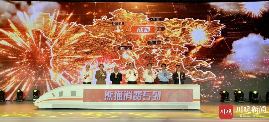 活动现场,发布了40个2025年“蜀里安逸”消费新场景、2025川渝20个不夜地标和20个夜经济新业态示范案例,启动发放了包括餐饮、川酒川茶、“锦绣天府”入川游、“最美川西景观道”自驾消费等消费券在内的“蜀里安逸”消费大礼包;随后,7名重点消费服务领域经营主体代表登台,共同为“熊猫消费专列”启程,标志着“购在中国·四川站”暨第四届中国(四川)国际熊猫消费节正式启动。