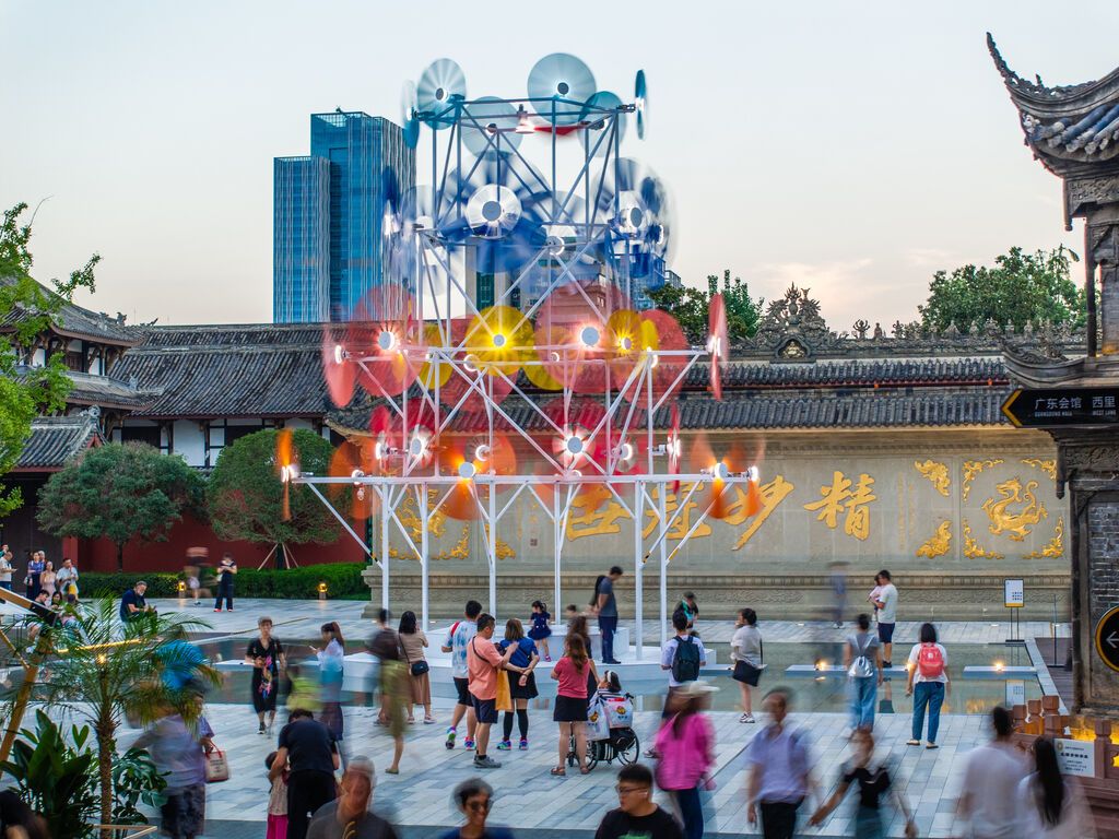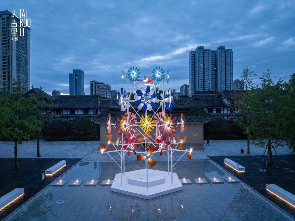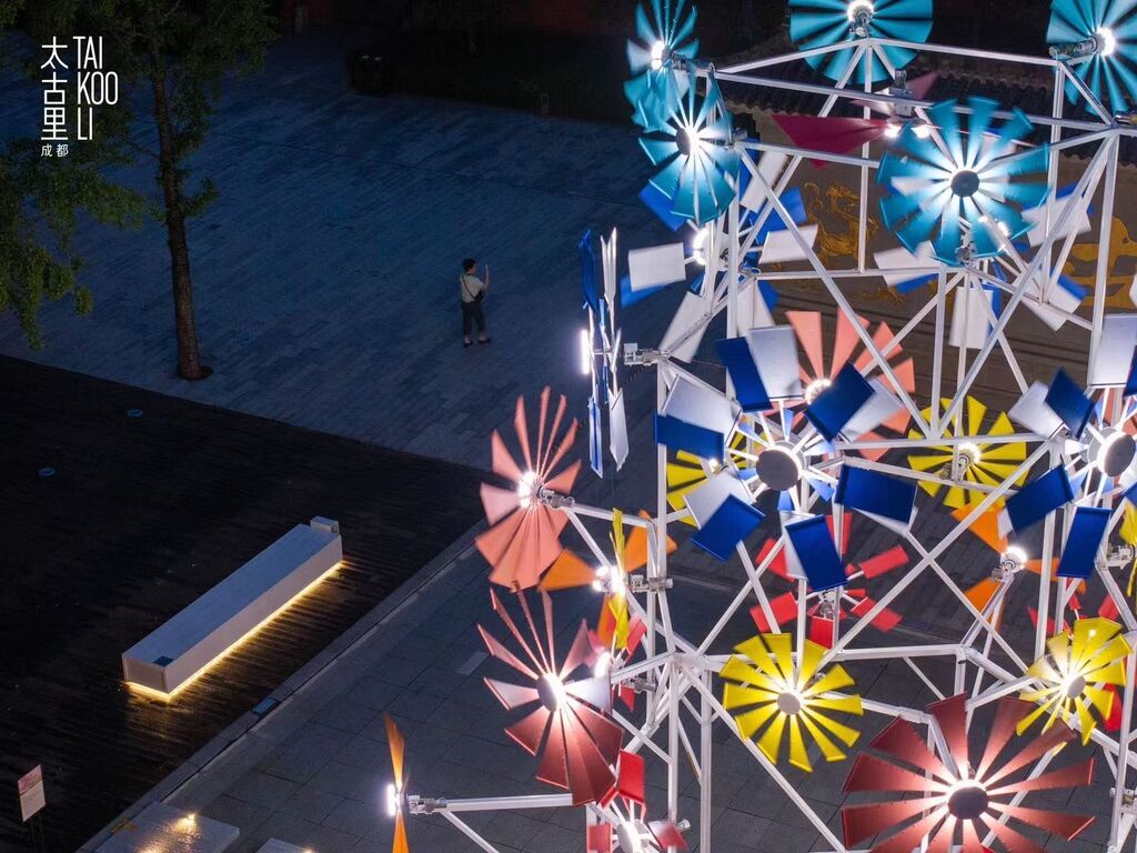 正如此次的公共艺术装置“乘风”,以富有历史文化底蕴的古建“字库塔”为引,结合现代化的文化元素“风车”,通过创新的国际化艺术表达,在成都市中心打造一片展现生活美学、滋养身心的秋日栖息地,持续为城市带来新的体验及活力。