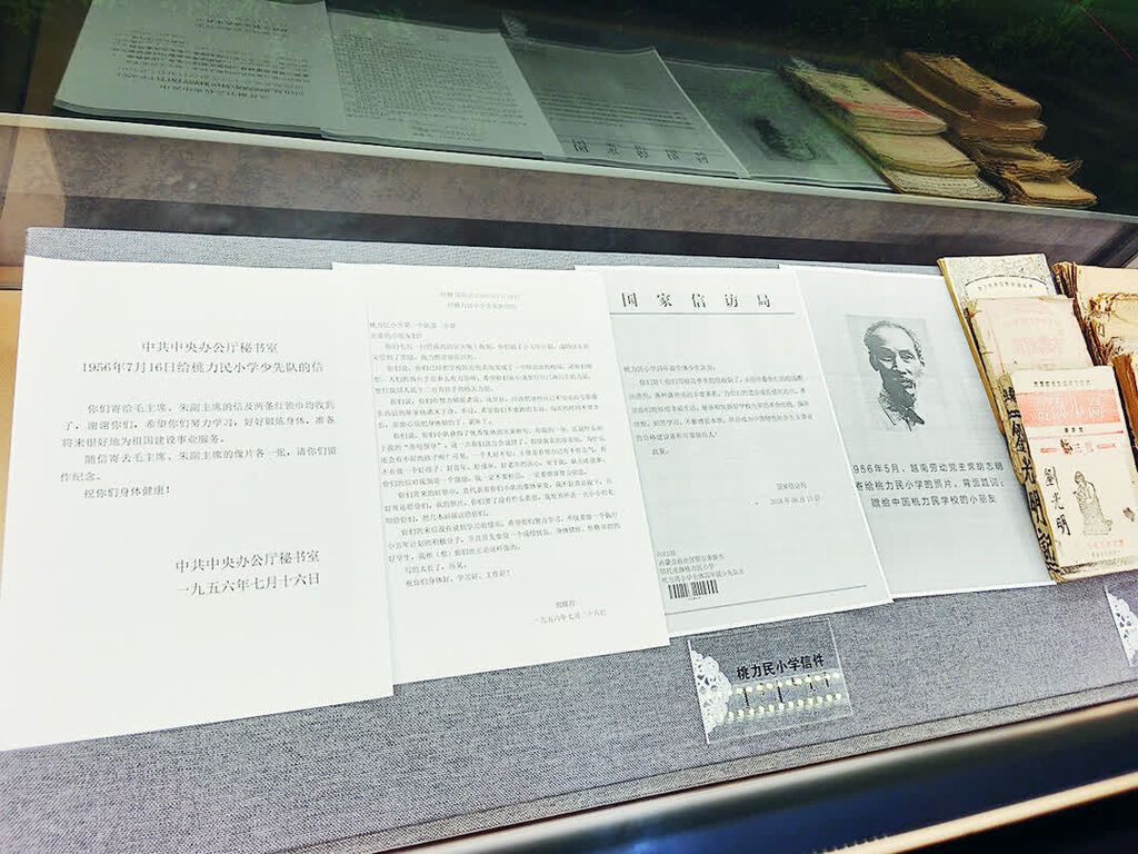 1956年,桃力民小学的少先队员们怀着赤诚之心,给毛泽东主席和朱德副主席写了一封信,并寄去两条亲手缝制的红领巾。7月16日,全校师生收到了来自中南海的回信 ——中共中央办公厅受毛主席、朱副主席委托,不仅带来了亲切的勉励,还随信寄来两位领导人的6英寸照片各一张。朱德副主席特意赠送给少先队员80余册画报。