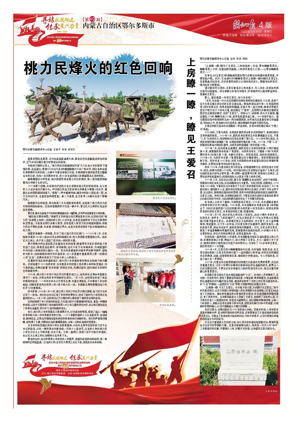 细腻的讲解像一把钥匙,打开了烽火连天的记忆闸门——1938年1月,日军指挥伪蒙军500余人踩冰过河占领杭锦旗王府,炮火的阴影笼罩着桃力民。就在这片土地上,共产党人竖起了抗日统一战线的大旗。